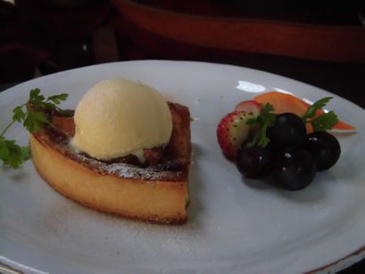 そして、娘はリンゴのケーキを頼みました。